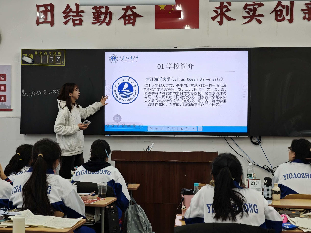水产与生命学院组织学生分赴省内外多所高中开展专场分享会,系统介绍学校办学特色与优势学科;同时深入社区面向家长普及招生政策,耐心解答疑问,发放宣传资料。海洋与土木工程学院学子重返母校分享大学成长经历,解读专业优势并提供备考建议;部分学生深入社区开展基层服务,展现责任担当;通过返校宣讲与社区实践双线并行,传递大海大声音。信息工程学院宣传团队走进高中校园,围绕学科优势、人才培养、奖助政策进行细致讲解,并介绍学院特色培养模式;通过一对一答疑和发放宣传手册,帮助高三学子明确方向,增强报考意愿。经济管理学院组建20余支宣讲队伍,赴省内外10余个市县20余所中学开展近30场宣讲,通过图文展示、成长分享和政策解读立体呈现办学成果;活动覆盖高中生800余人,有效传递了学校育人温度。海洋法律与人文学院“海韵知行”实践队以法学为核心,兼顾多专业走进高中开展专场宣讲,通过专业解读、备考分享和互动答疑展现“蓝色育人”理念;覆盖学生50余人,发放宣传资料50余份,激发学子向往之情。外国语与国际教育学院十余名学子分赴多地10余所高中,通过进班宣讲、播放宣传视频、发放宣传手册等形式全面展示校园文化;活动覆盖高中生500余人,有效提升了学校的社会影响力和美誉度。